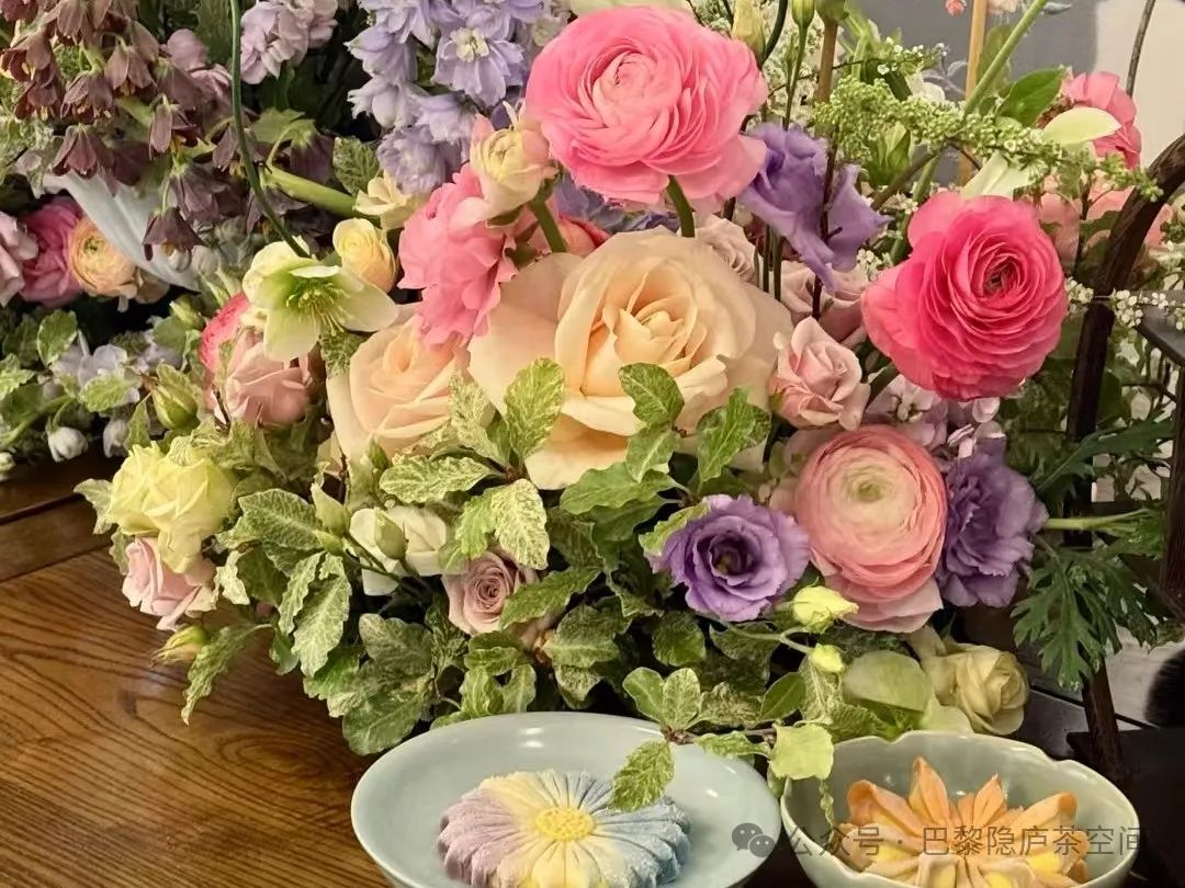 Elise Dumas s’inspire de la nature pour marier à la perfection la fluidité de l’art floral français et la zenitude orientale du salon de thé Invisible. Dans la salle de thé, les cerisiers en fleurs se balancent doucement, les orchidées poussent discrètement, et chaque composition florale ressemble à une peinture à l’encre de Chine, interprétant la philosophie orientale « une fleur, un monde ». Les invités se promènent parmi les fleurs, dégustent le thé de printemps spécialement sélectionné par Yinglu, et ressentent la poésie de « faire bouillir le thé au printemps, écouter la pluie tomber sur les fleurs tombées » dans le parfum du thé et des fleurs.